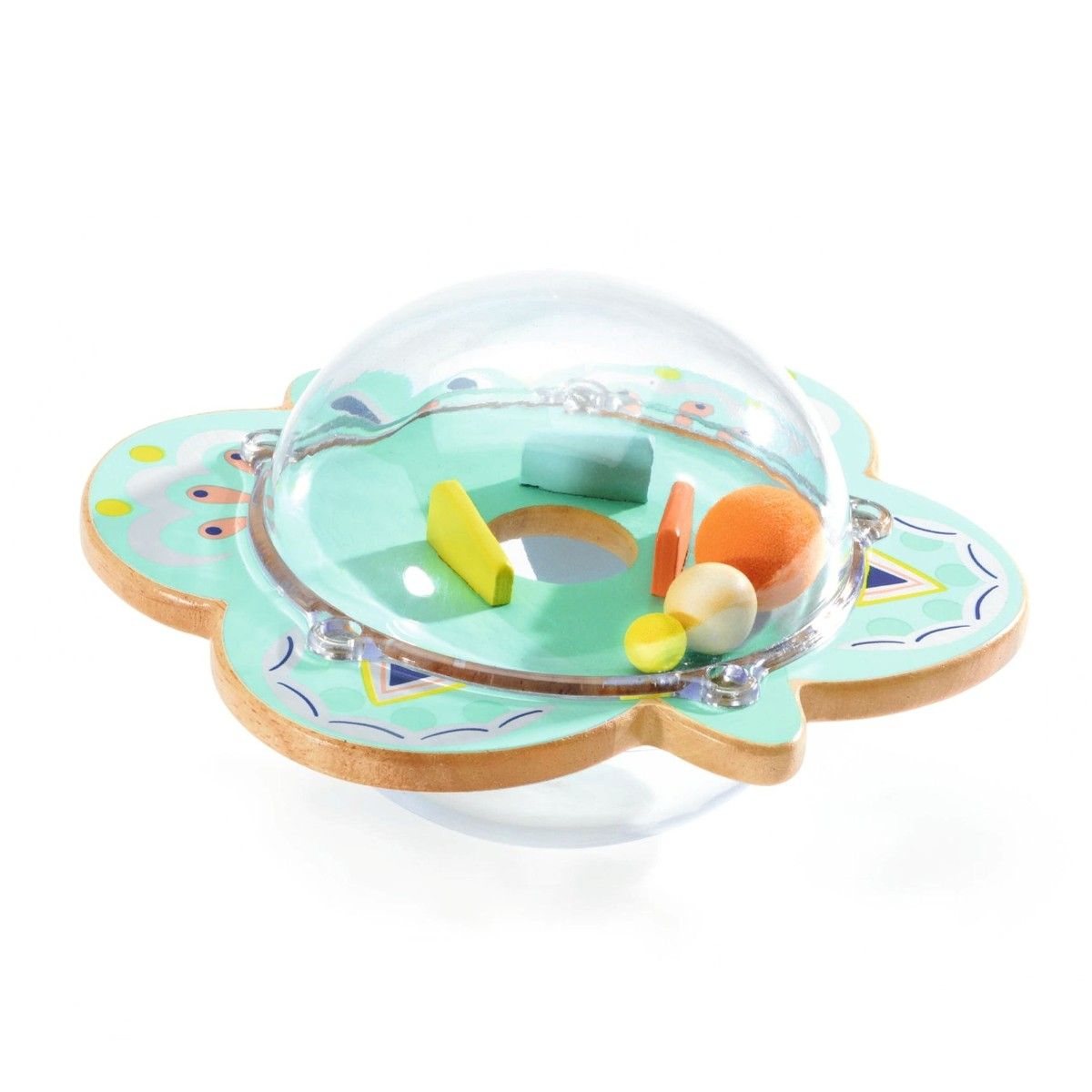 Et sjovt legetøj fra Djeco, hvor både motorikken og begrebet "forsvinder" introduceres. Barnet skal få kuglerne til at forsvinde, ved at vende og dreje legetøjet, så de 3 forskellige kugler falder gennem hullet. Men hov, hvor blev de af? Vend legetøjet og opdag, at nu er kuglerne her, og legen kan starte forfra!
