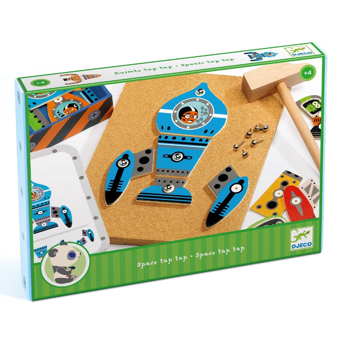 En flot udgave af den klassiske hammerleg, hvor man skal bygge flotte rumskibe af de forskellige dele på korkpladen med den medfølgende hammer og stifter.
