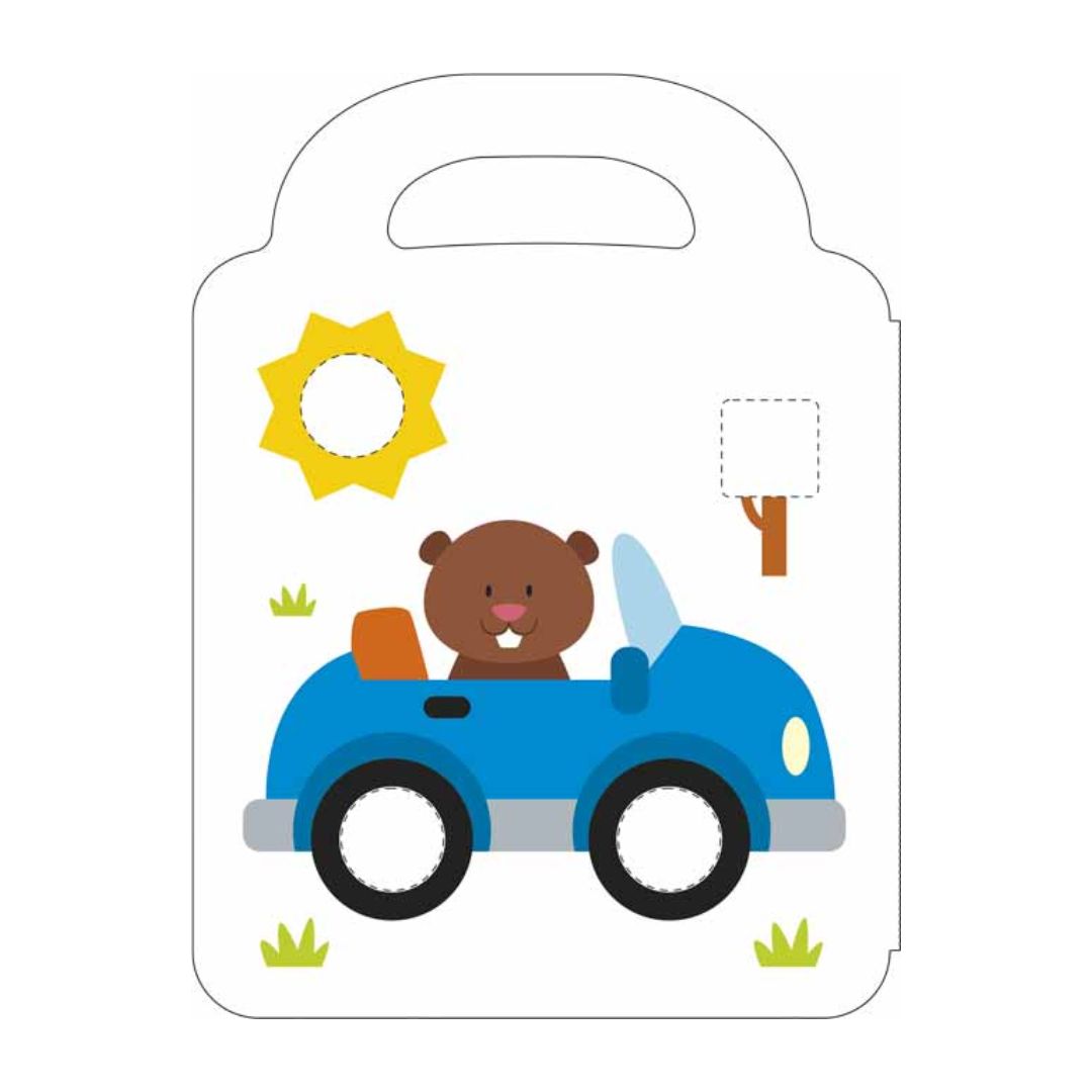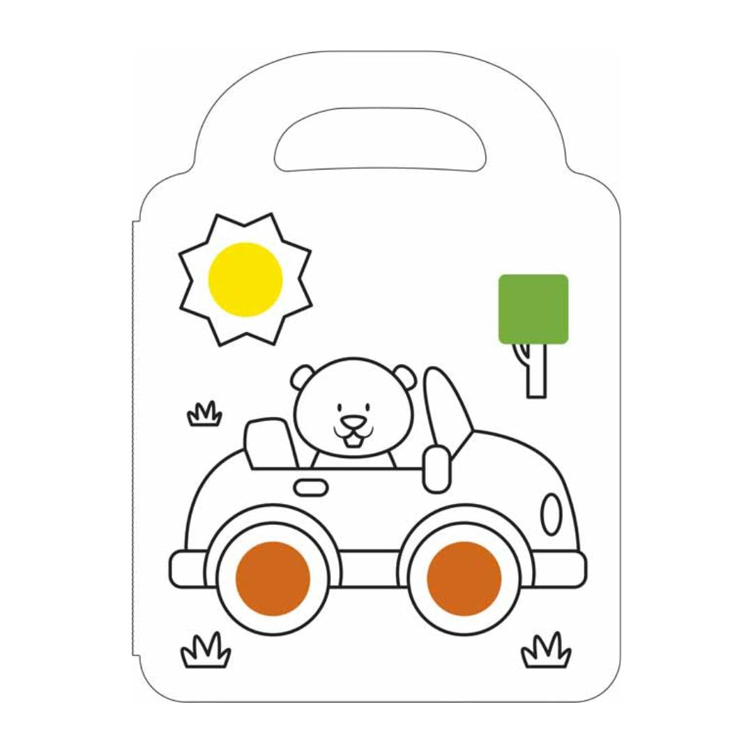 Sæt så klistermærkerne ind på de tomme pladser og farvelæg tegningen med de rigtige farver.