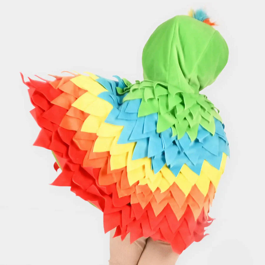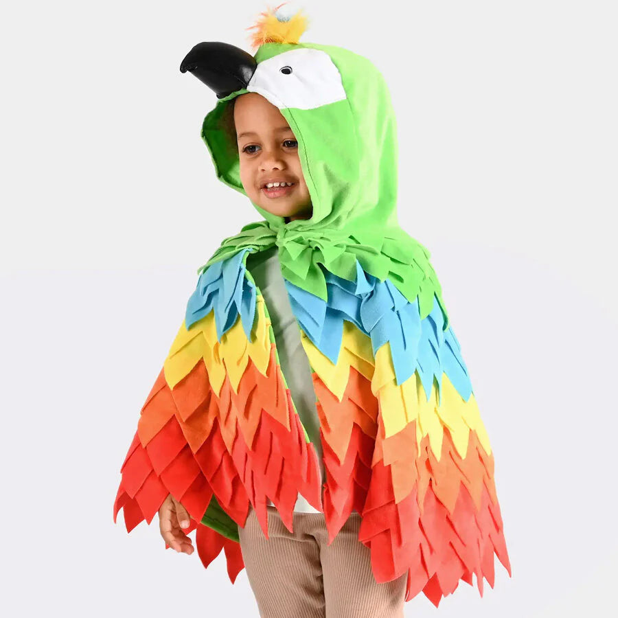 Lad dit barn sprede vingerne og flyve ind i legen med denne flotte papegøje kappe. En farverig og fantasifuld kappe, der hurtigt forvandler hverdagen til et tropisk eventyr fyldt med junglestemning og vilde opdagelser.