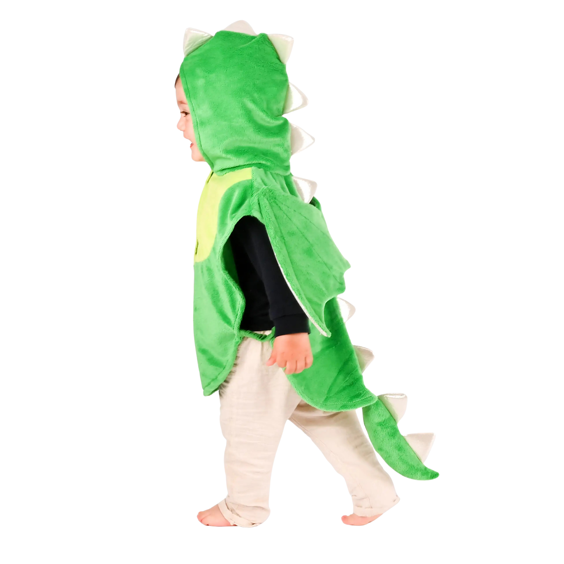 Lad dit barn trylle sig ind i fantasien med denne grønne dragekappe til børn, med glitrende sølvdetaljer indeni og en dramatisk lang hale, der fuldender det eventyrlige look. Perfekt til små dragerelskere klar til eventyr og vilde fantasihistorier.