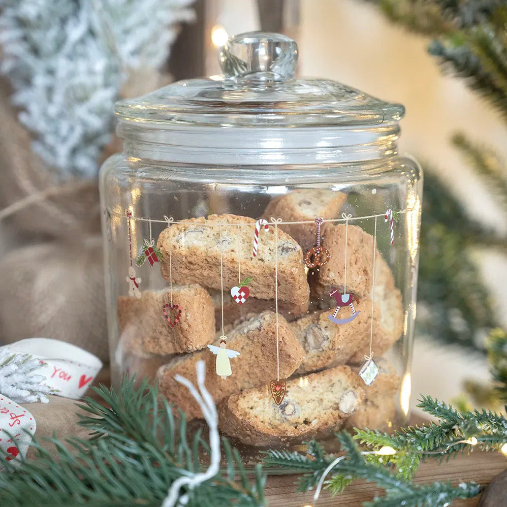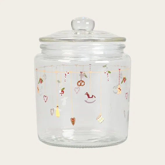 Skab ægte julehygge med den fine glaskrukke pyntet med julepynt. Perfekt til opbevaring af småkager, slik eller nissens yndlingsgodter.