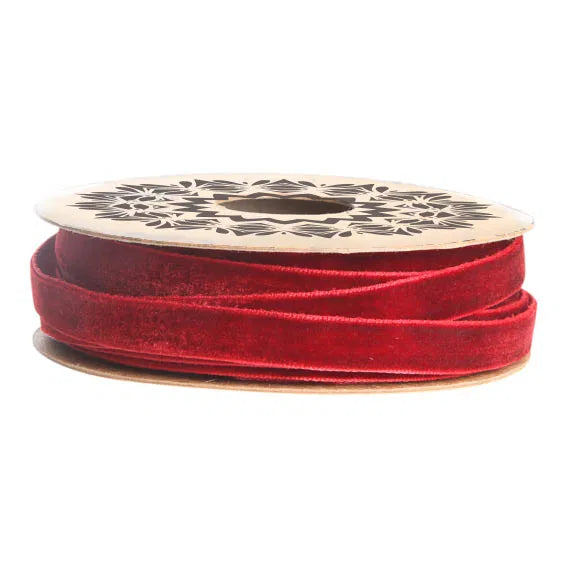 Gør dine julegaver ekstra fine med det klassiske røde velour gavebånd. Båndet kan også bruges til at binde små sløjfer på juletræet eller rundt om stearinlys.