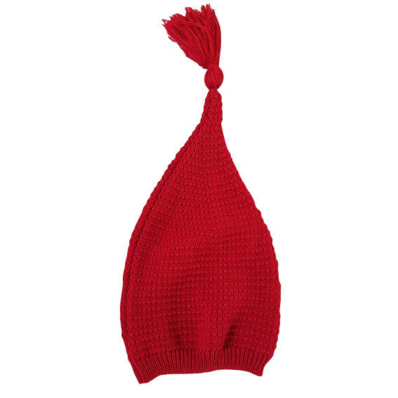 Denne søde strikkede nissehue er helt klassisk med en fin rød kvast.