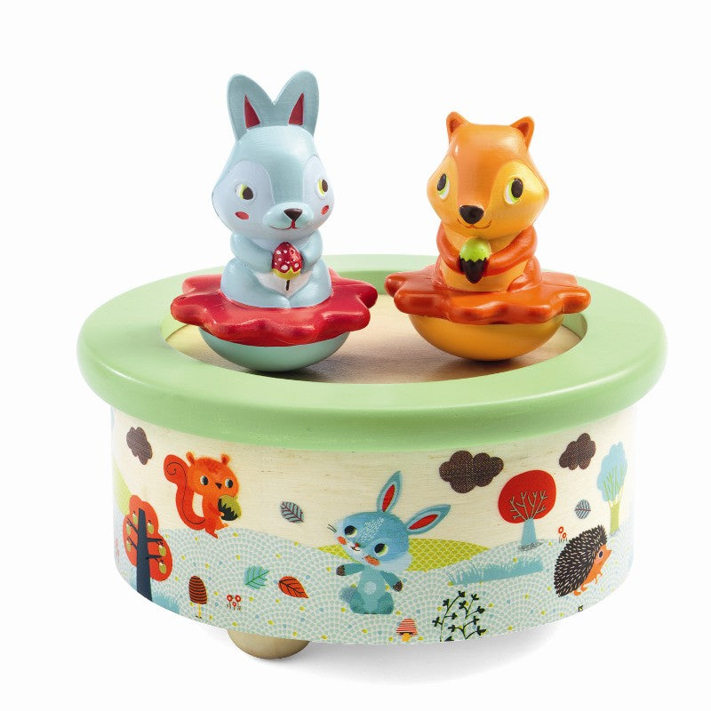 Den lille spilledåse i træ med dansende figurer på toppen er så underholdende for alle. Træk spilledåsen op og se de 2 søde venner snurre omkring hinanden mens musikken spiller.