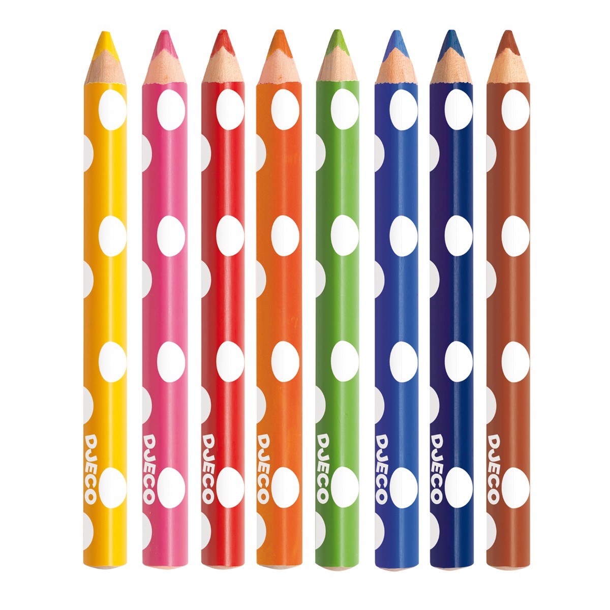 Ergonomisk formede farveblyanter til de mindste. Pakken indeholder 8 flotte Djeco farver.