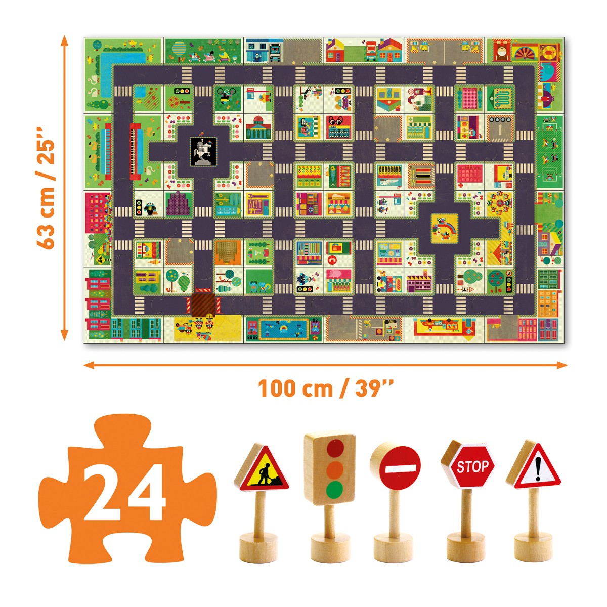 Djeco Kæmpepuslespil - Byen - 24 brikker