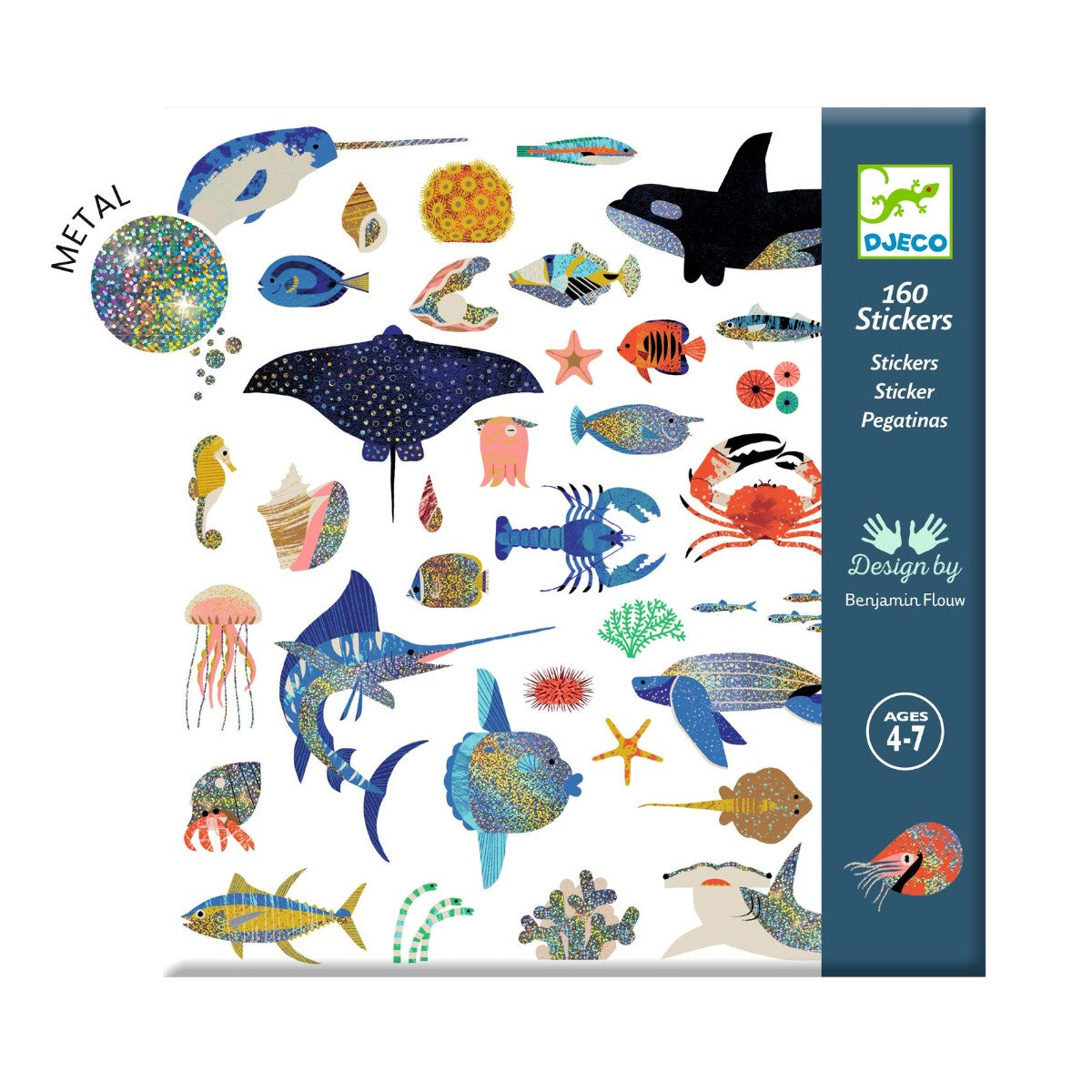 Nu kan du lave de flotteste, personlige gaver, invitationer m.m. med disse smukke klistermærker med havdyr. Med metallisk overflader glimter og skinner de flot. 160 flotte klistermærker fra Djeco.