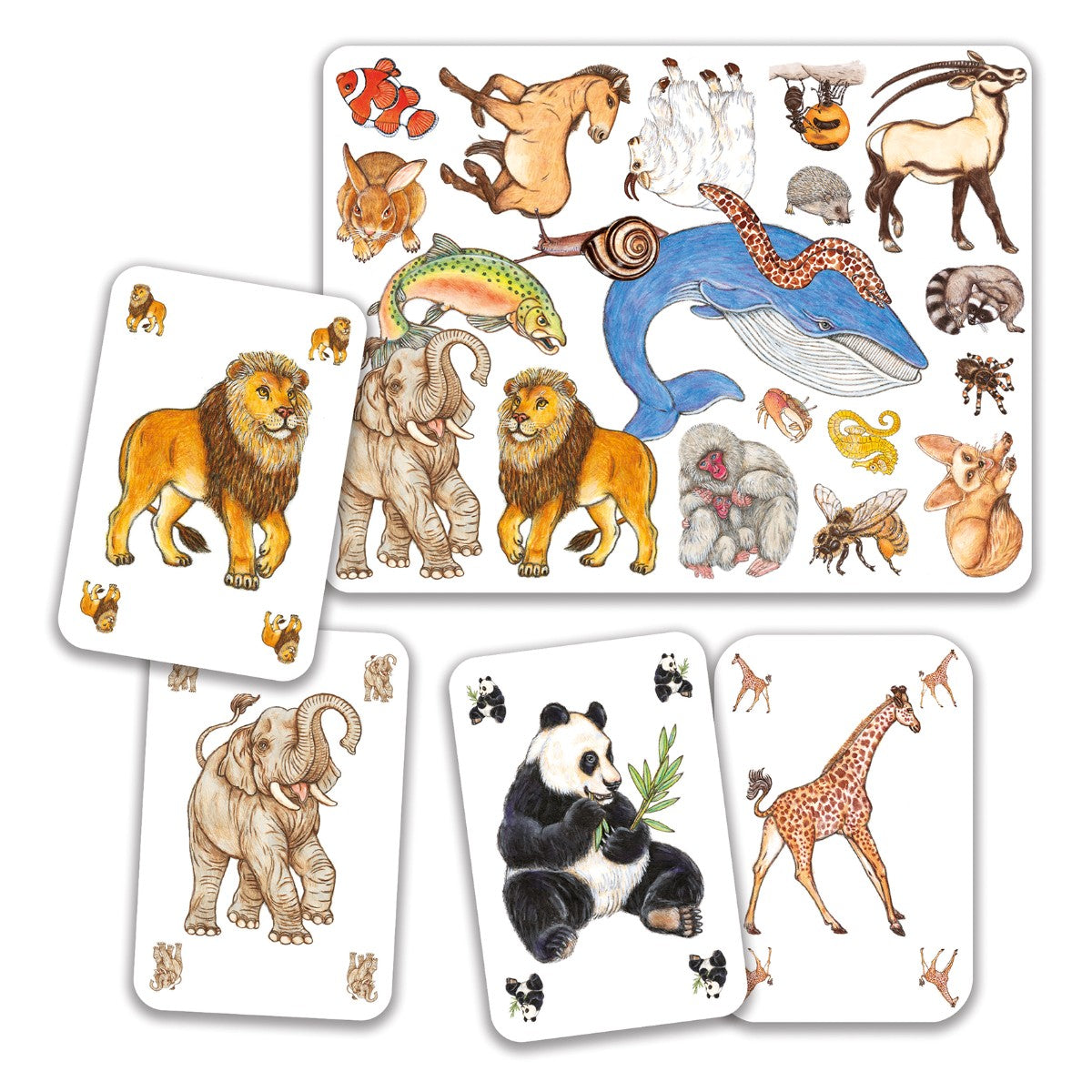 Et fantastisk observationsspil, hvor det gælder om, først at komme af med sine kort. Spillet består af 12 store kort samt 60 dyrekort. Hver spiller får 8 dyrekort. Derefter vendes det første af de store kort. Nu gælder det om at være hurtigt, til at få øje på et dyr på hånden, som også er på pladen, og lægge det på bordet. Kun den spiller der først fik lagt sit kort ned, slipper af med det. De andre spillere må tage deres kort op igen, og et nyt kort vendes.