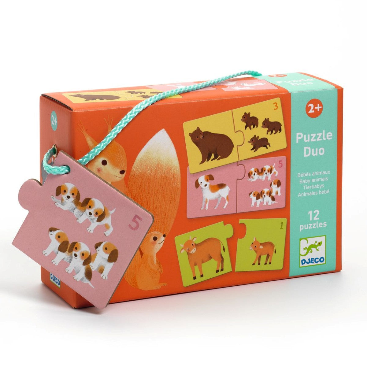 De sjove lærespil fra Djeco kommer i en lille æske, som ikke fylder meget. I denne ske skal starte med at finde ud af hvem der er forældre til de små dyrebørn, og så kan du herefter øve dig i at tælle, hvor mange dyrebørn der er på hvert kort.