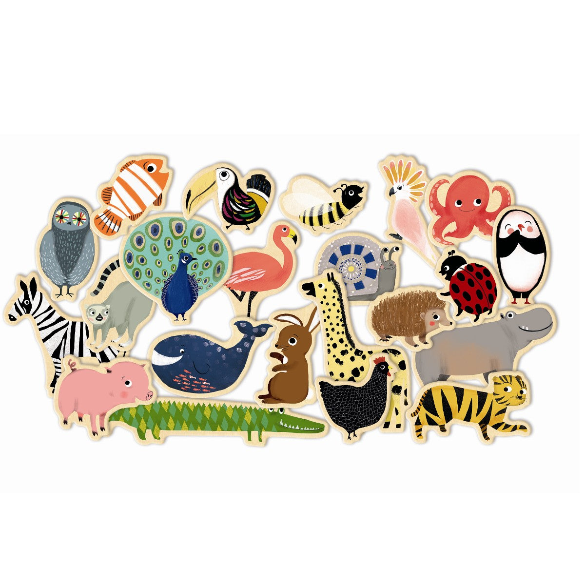 36 stk. magneter i træ, med de fineste dyremotiver.