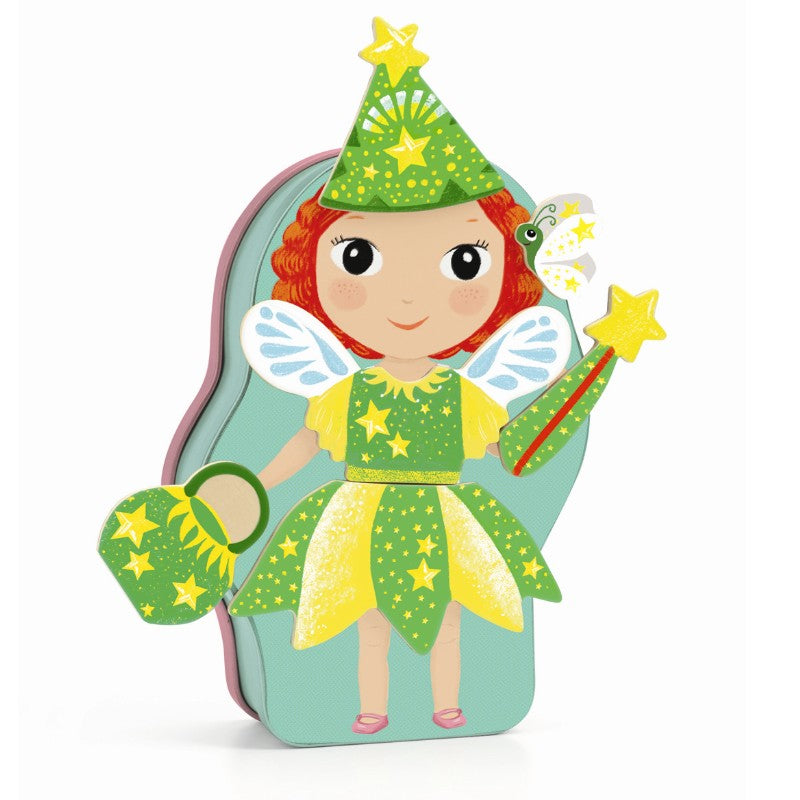 Den sjovt formede æske er magnetisk, og man sætter nogle af de 27 magneter på, for at lave sin ynglings prinsesse eller fe. Når man ikke leger med magneterne kan de opbevares i æsken. Magneterne er også en rigtig god aktivitet til en længere køretur - hvor tiden flyver afsted mens man pynter æsken.