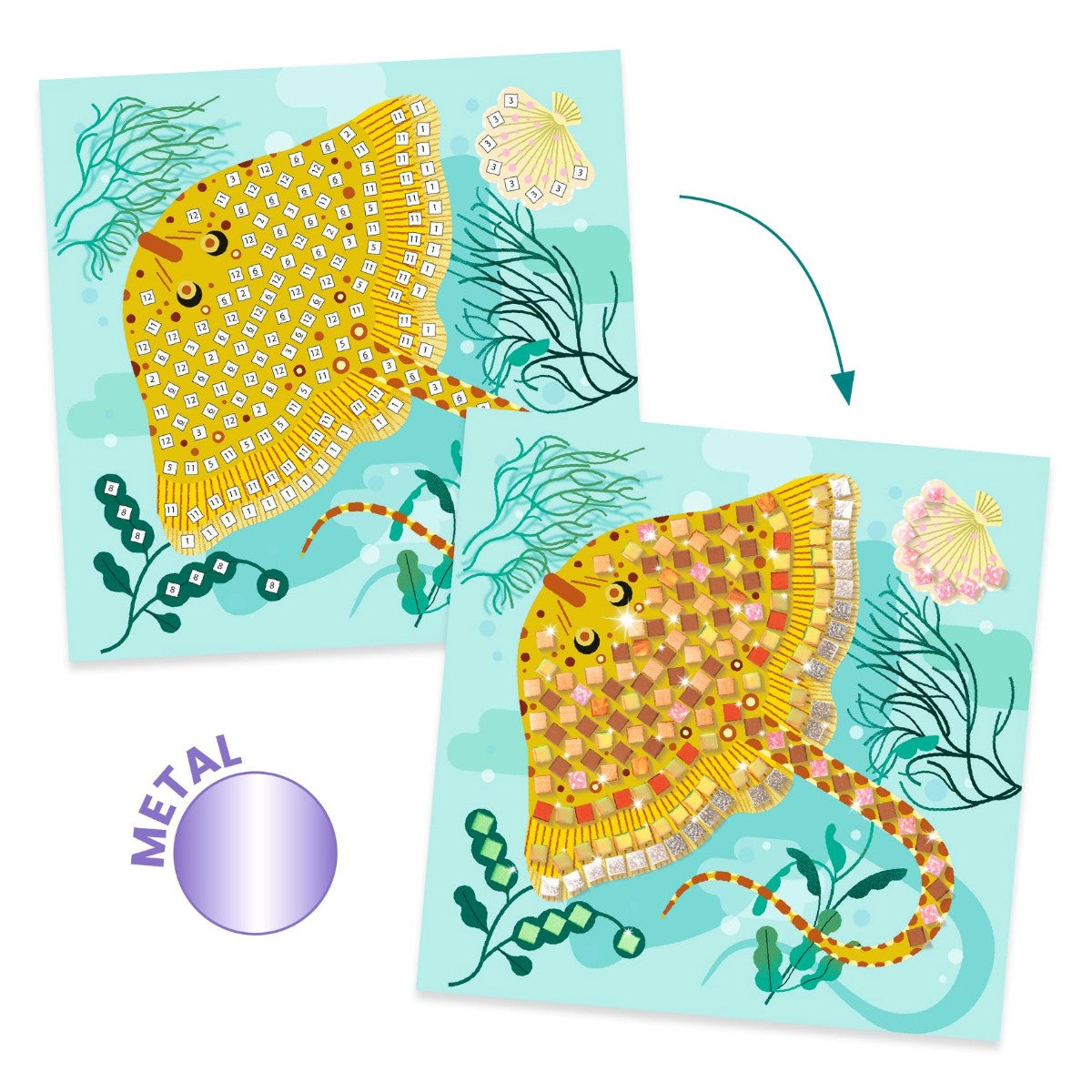 Skab 4 flotte motiver af havdyr vedhjælp af mosaik. Nogle af arkene er endda med en metallisk glitrende overflade, så du får nogle spændende og levende motiver.