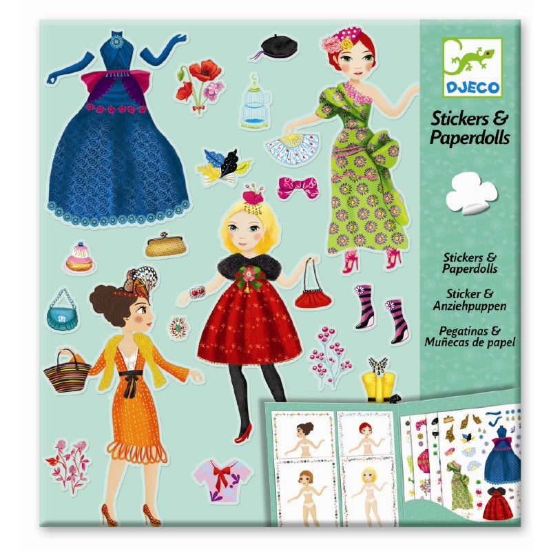 En flot samlemappe indeholdende 8 postkort med forskellige mennesker samt 4 kort med stickers, til at klæde figurerne på. Klistermærkerne kan tages af og på og genbruges.