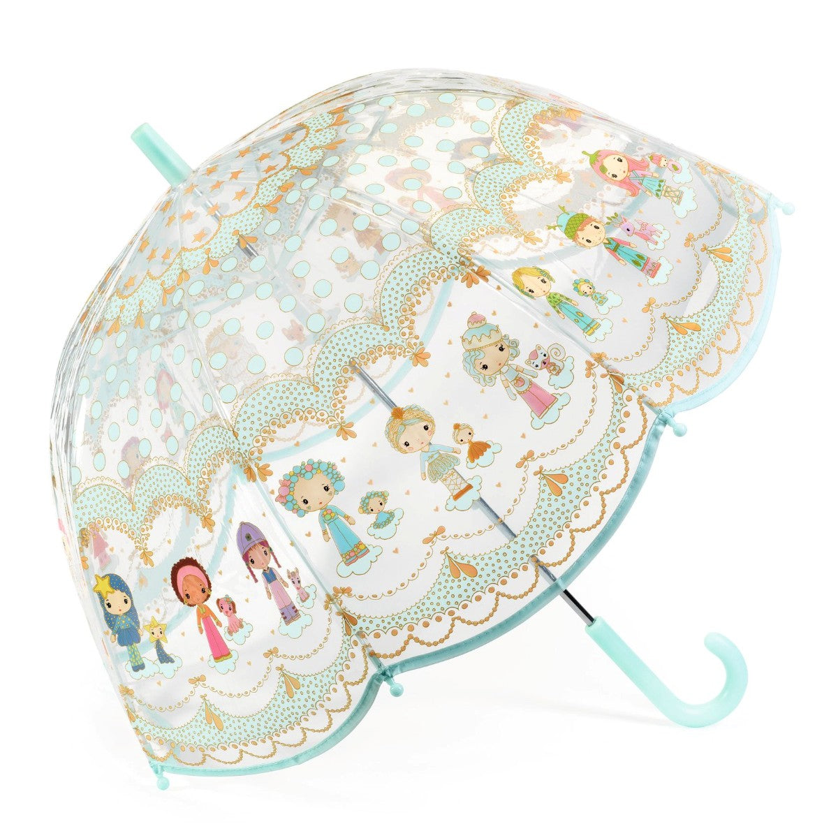 Denne elegante og praktiske paraply har en gennemsigtig skærm, så barnet nemt kan se, hvor det går. Den har en robust glasfiberramme med otte ribber, en manuel åbning med et sikkerhedssystem, der beskytter små fingre, samt en flot tekstilfinish. Det matte plastikhåndtag giver et godt greb, og de farverige illustrationer gør den til det perfekte tilbehør på regnvejrsdage.
