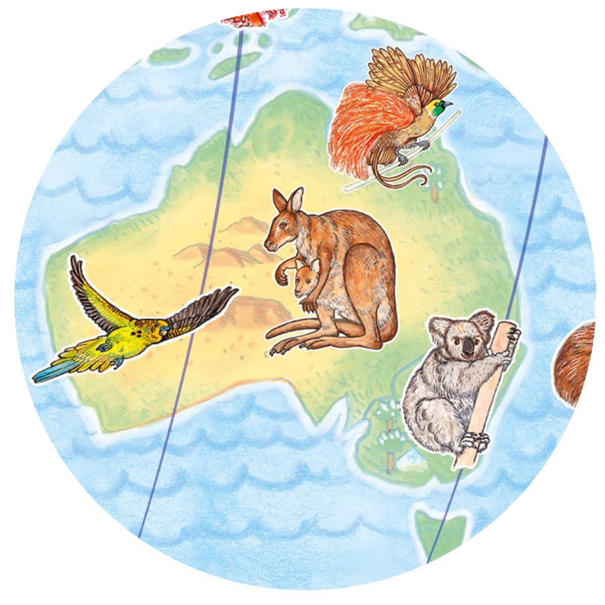 Flot verdenskort puslespil, der viser de særlige dyr, der er kendetegnende for de enkelte lande.
