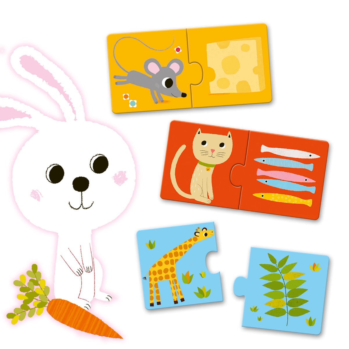 Djeco Lærespil Puzzle Duo - Hvem spiser hvad?