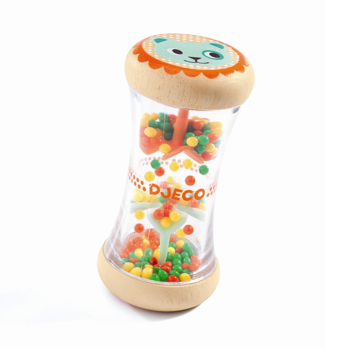 Flot regnmager i friske farver. Barnet vil fryde sig over at se og høre de fine, farvede plastkugler løbe fra den ene ende til den anden ende om og om igen. Et klassik legetøj til de mindste i Djecos smukke stil.