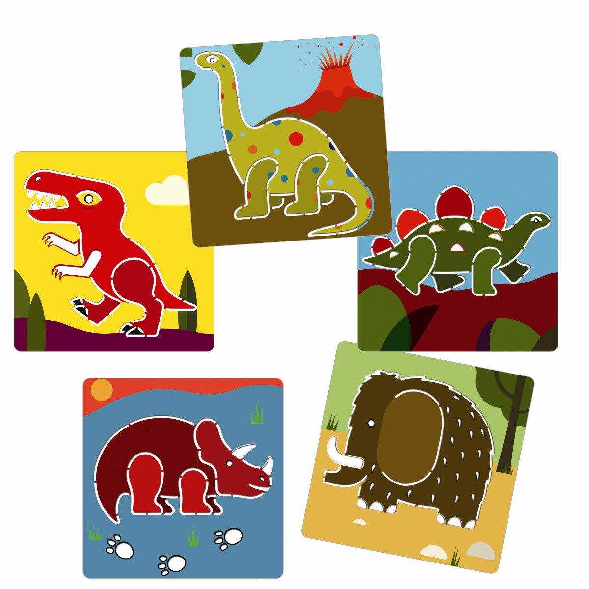 Flotte skabeloner til at tegne i. 4 forskellige søde dinosaurer. Og den sødeste mammut. Skabelonerne er i plast så de er nemme at bruge samt meget holdbare.