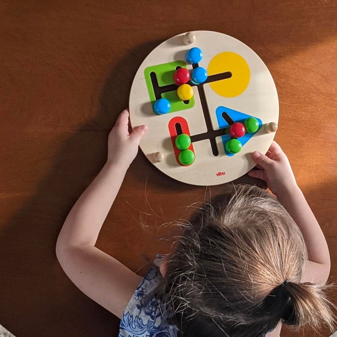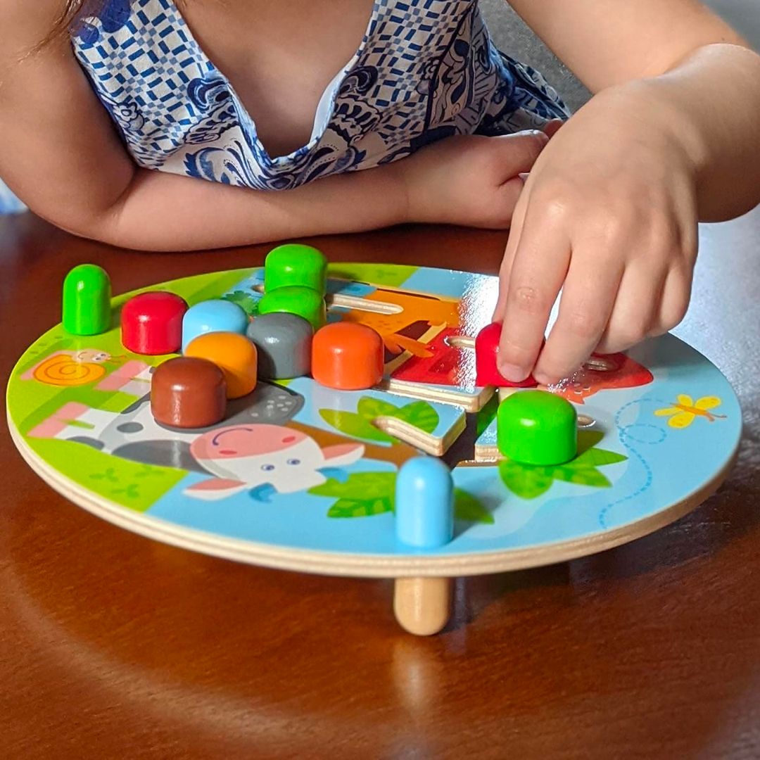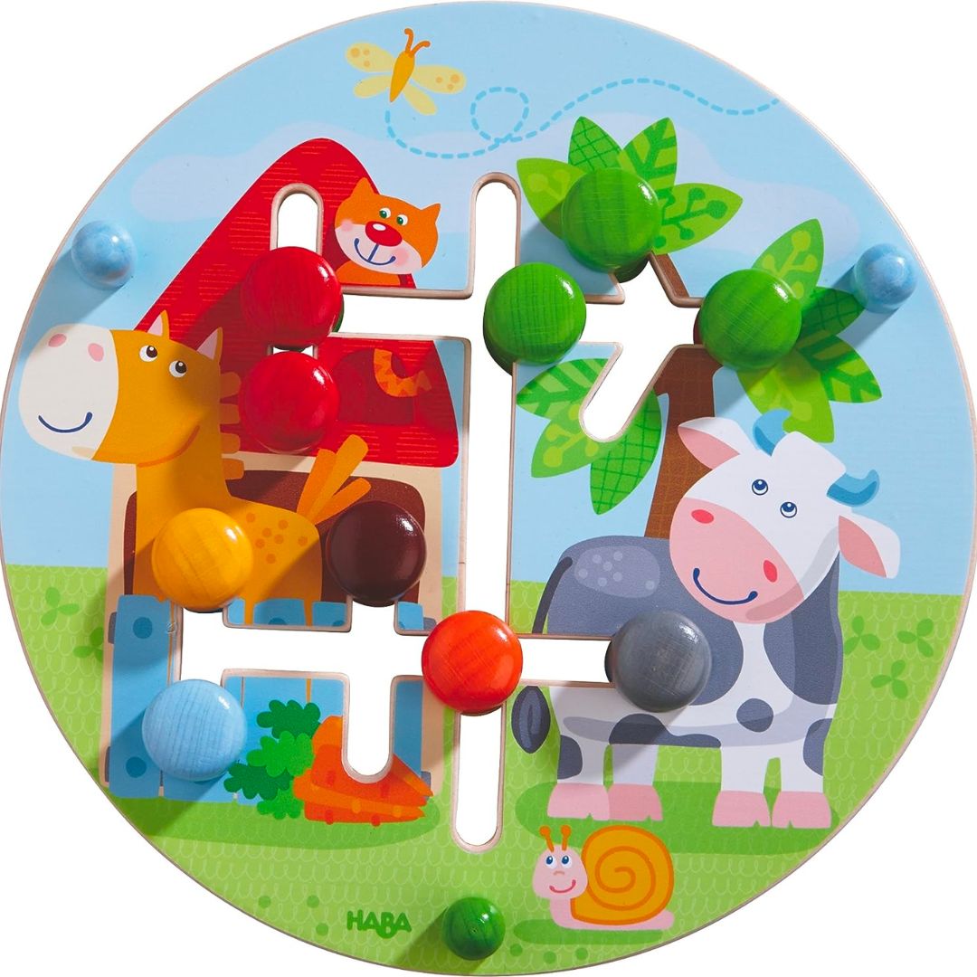 Tag en tur på bondegården og besøg de mange søde dyr. Find vej med farverne og træn motorikken og farvelæring.