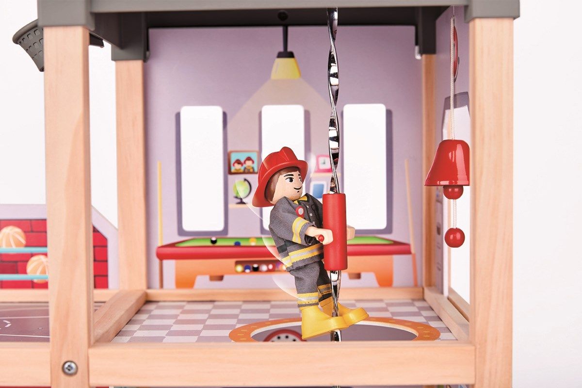 Stor Brandstationslegesæt med rigtig mange legemuligheder. Sættet indeholder 13 stk tilbehør, en brandbil og en redningshelikopter. Brandstationen måler hele 60 x 30 cm i længde og bredde, og 47 cm i højden.