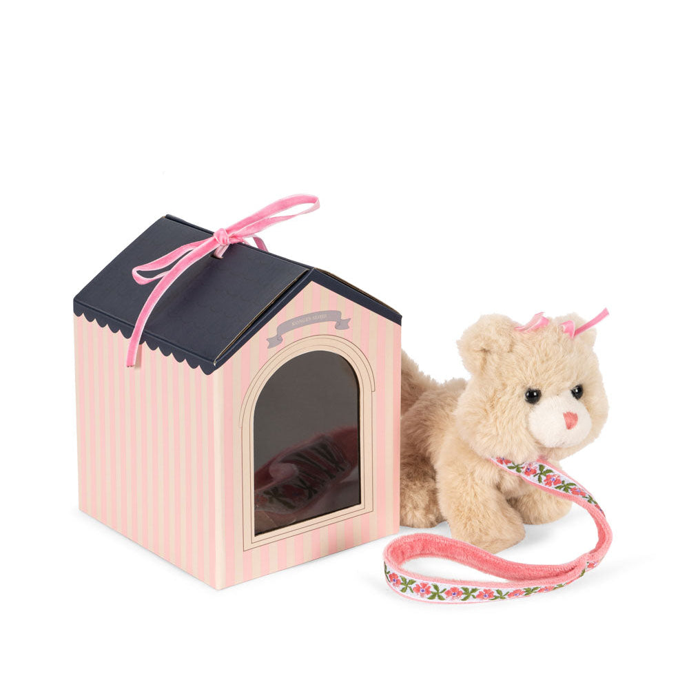 Sød, blød kattekilling med sit eget lille hjem, der er nemt at bære med sig. Den lille kat har også sit eget snor, så du kan tage den med overalt.