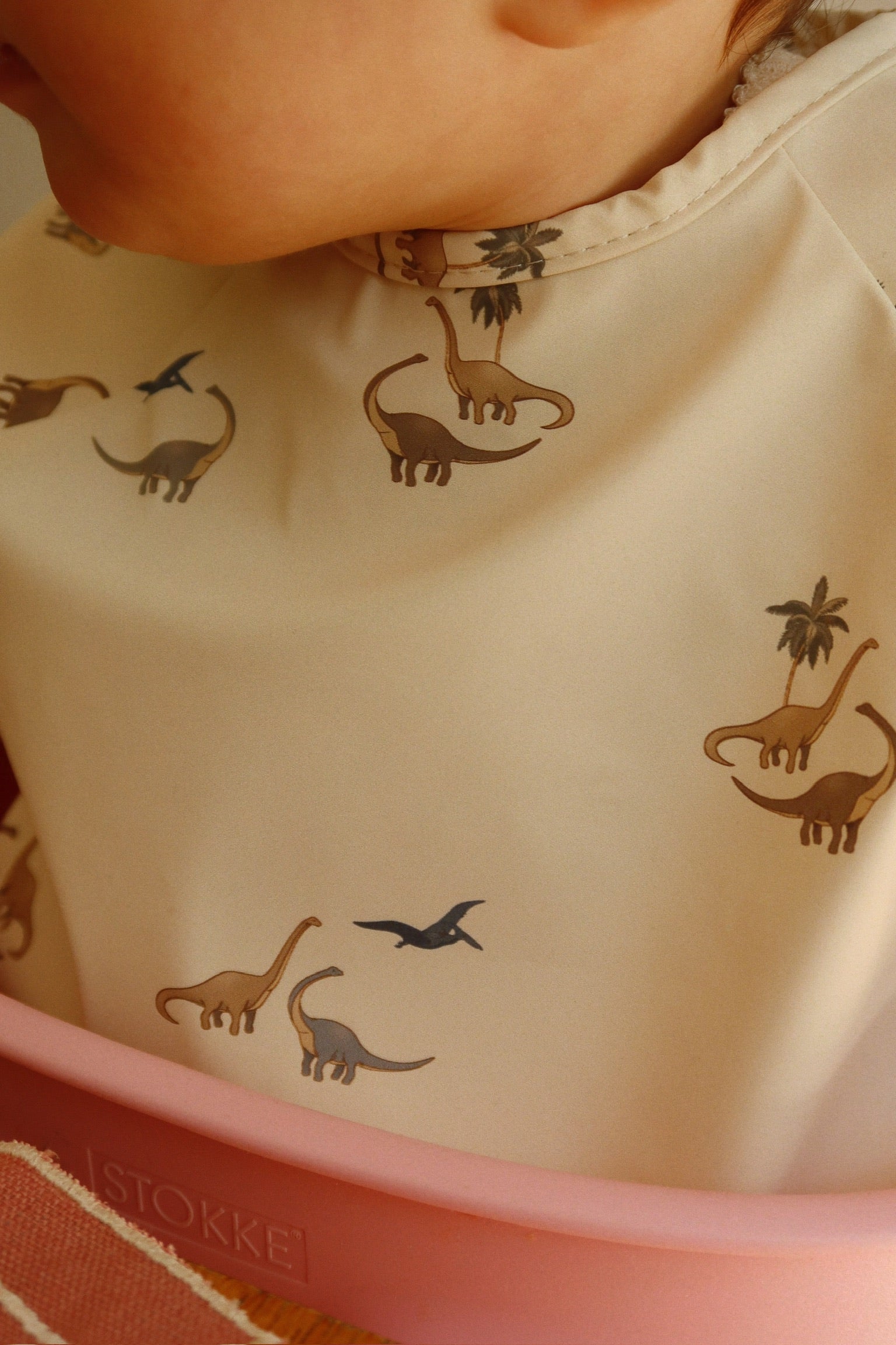 Sættet indeholder 2 stk. spisesmække med lange ærmer: én ensfarvet og én med print.