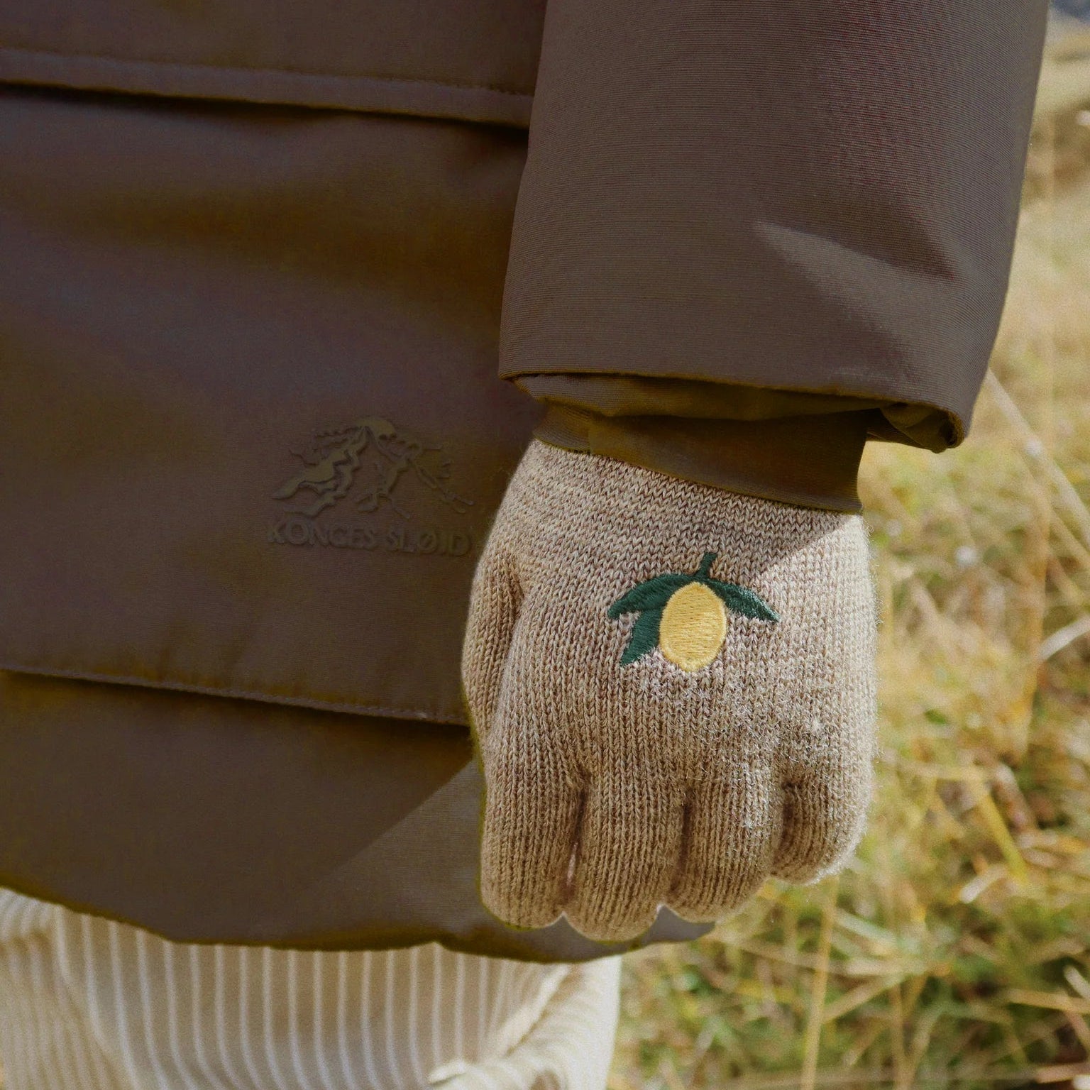 Konges Sløjd Filla 2-pak handsker 5-8 år, Lemon/Stripe