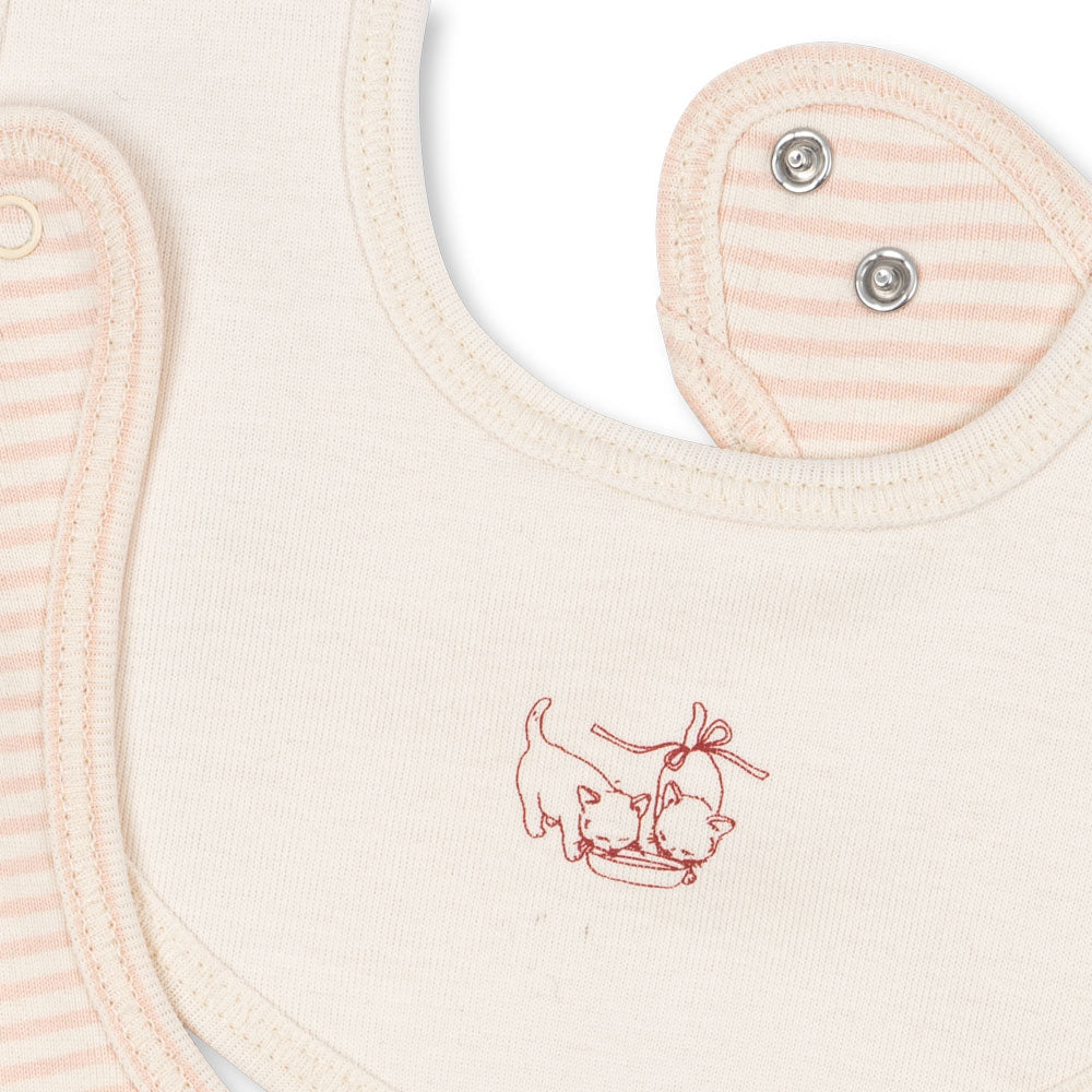 Bløde hagesmækker i økologisk bomuld i en praktisk 2-pak, fordi vi ved, at du får brug for dem. Klassisk design med justerbar trykknaplukning bagpå.