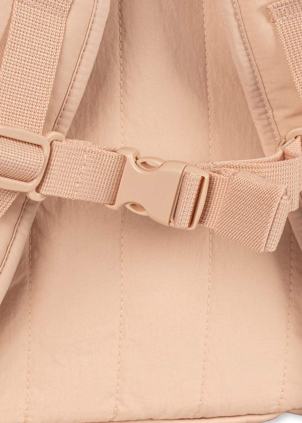 Juno Kitty rygsæk fra Konges Sløjd i farven Cameo Rose er en sød og praktisk rygsæk, der passer perfekt til børnehave og små udflugter. Det fine kattedesign giver tasken et legende udtryk, som hurtigt bliver en favorit hos børn. Rygsækken har quiltet struktur og en god lynlåslomme foran. Den åbnes i toppen med en dobbelt lynlås, hvor der indvendigt er ét stort rum. På siden af rygsækken er der en stiklomme med elastik i toppen. Rygsækken har justerbare skulderstropper, som kan klipses sammen på midten. I toppen er der et håndtag.