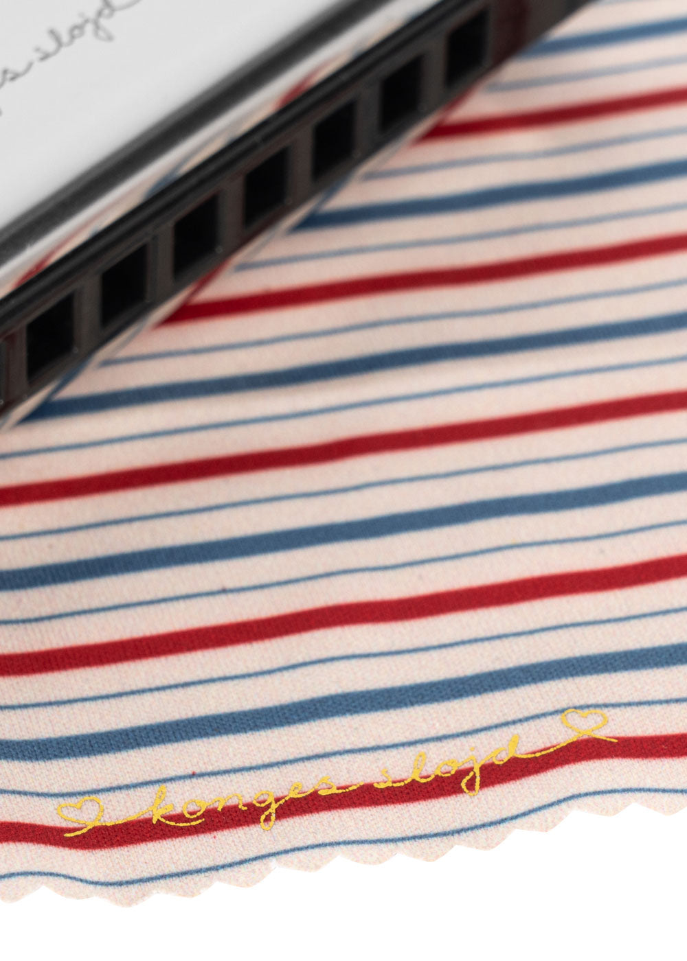 Sød og smart lille mundharmonika lavet af rustfrit stål. Leveres i en dekorativ lille æske til opbevaring, og der medfølger en lille bomuldsklud til polering.
