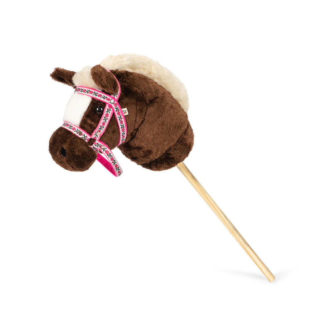 Sød kæphest til timevis af sjov og leg. Hestehovedet er fastgjort på en træpind, der gør den nem at styre.