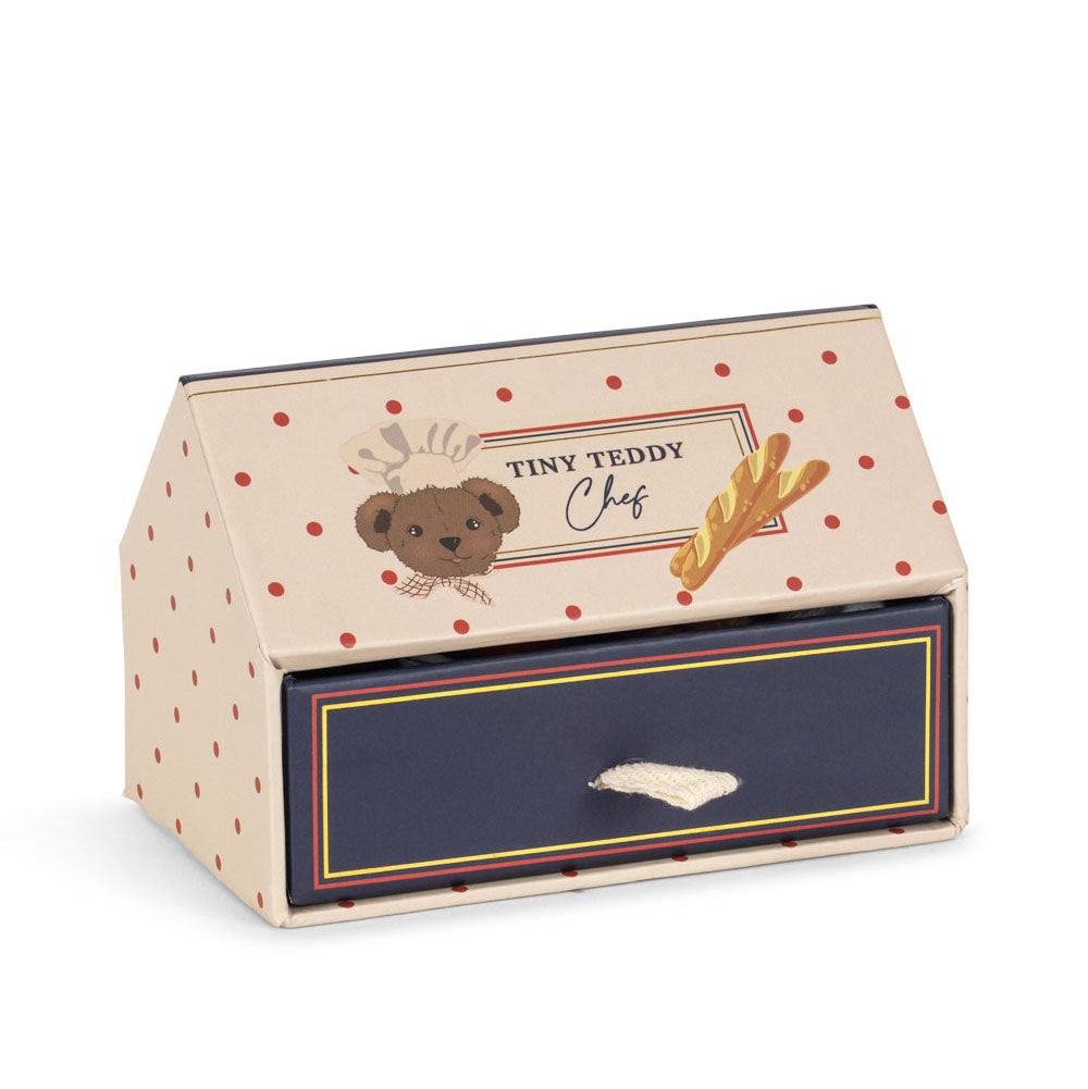 Den mest charmerende lille bamse til børn fra 3 år. Tiny Teddy Baker bor i sit eget lille bageri og elsker at bage dagen lang. Hans livret er baguettes! Det perfekte legesæt til børn fra 3 år, der elsker rolleleg, udklædning og små fortællinger.