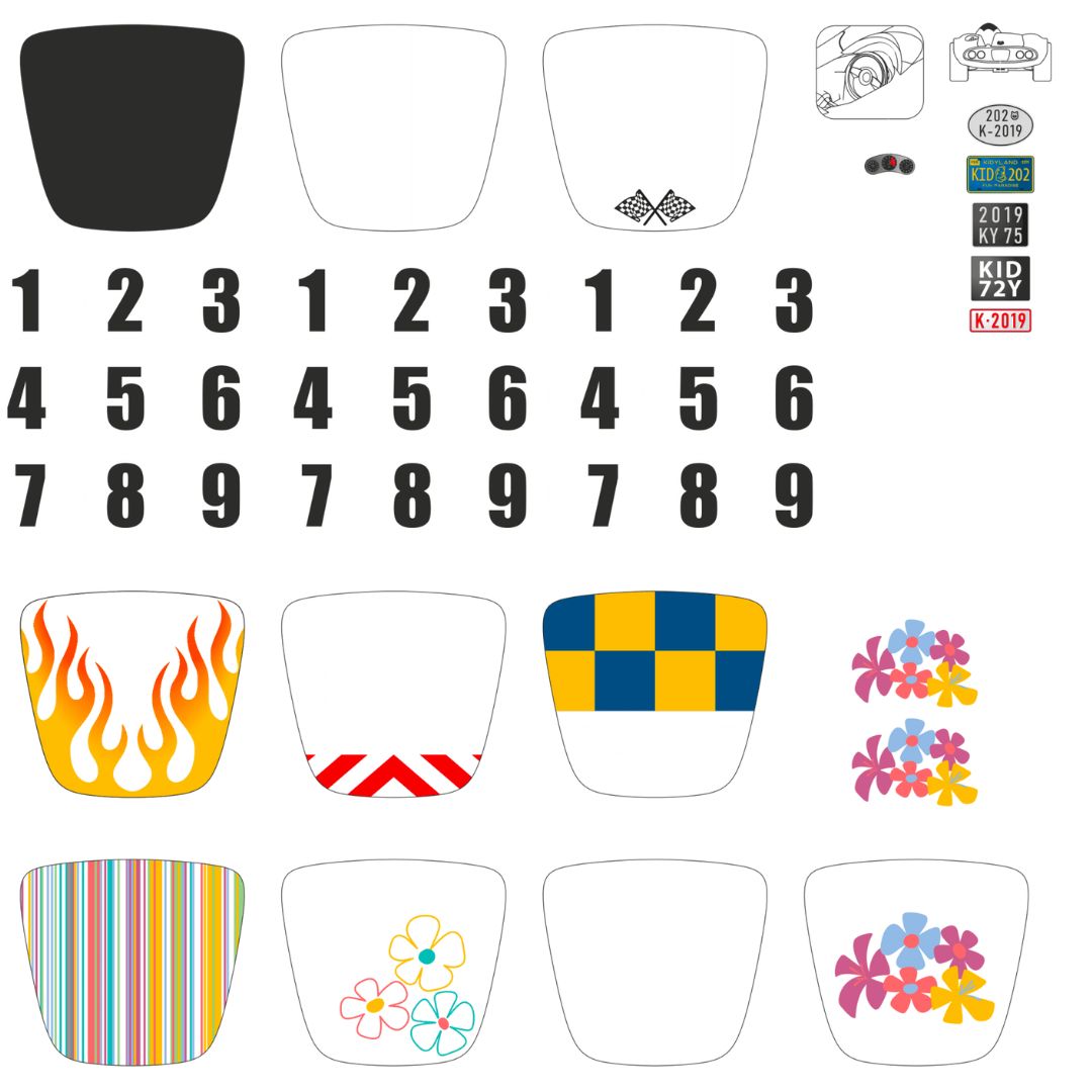 I pakken er også klistermærker, så barnet kan personliggøre sin racerbil. Der er gjort plads til enkelt passager i bilen. Så barnets egen actionfigur kan indtage førersædet.