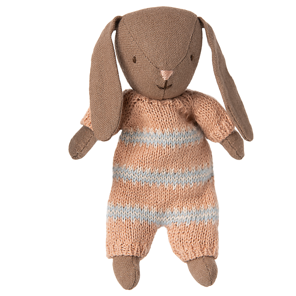 Maileg Kanin, Micro - Brun - Støvet rosa strikket dragt