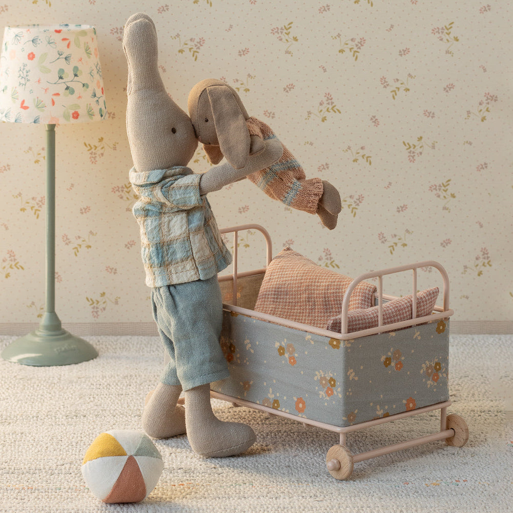 Lad historiefortællingen og timevis af leg begynde med denne bløde kanin. Den passer perfekt til Maileg tilbehør i størrelse Micro og kan bo i dukkehuset House of Miniature. Denne kanin har magneter i hænderne.