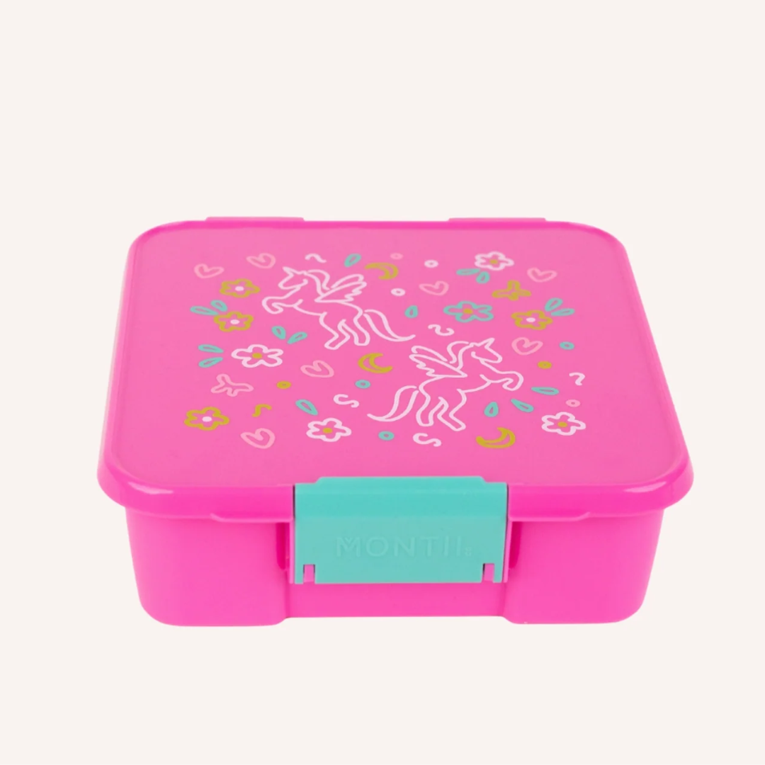 Med tre separate sektioner er Bento Three designet til ældre børn, voksne og små med en større appetit! Pak en hel sandwich, rugbrød, wraps eller endda croissanter i den store sektion. De opdelte lækagesikre* sektioner gør det muligt at pakke frugt, grøntsager, kiks eller yoghurt side om side.