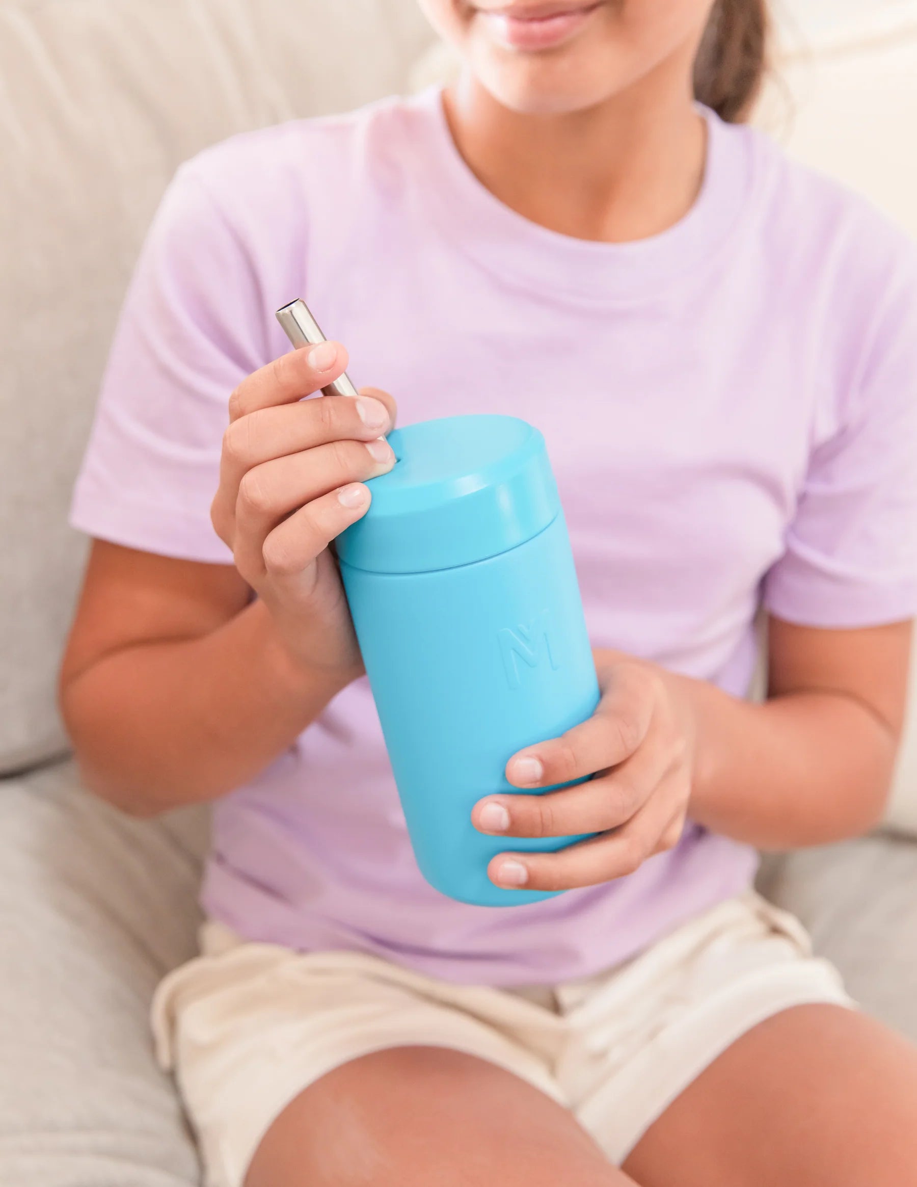 Den universelle drikkedunk base kan sammensættes med alle Montii's låg, sugerør og bund. På den måde kan du sammensætte din helt egen unikke drikkedunk. Drikkedunken kan holde koldt i op til 24 timer og 8 timer varmt.