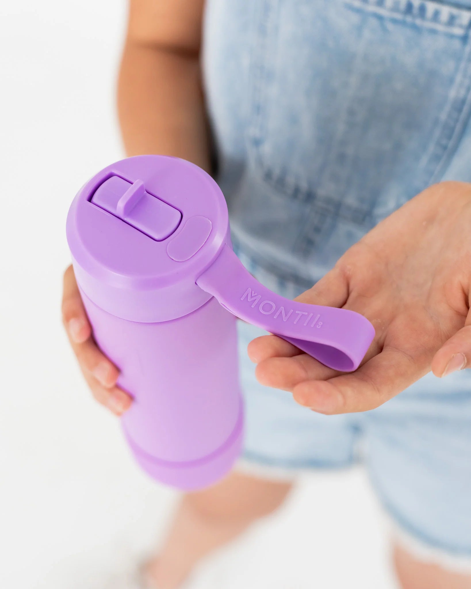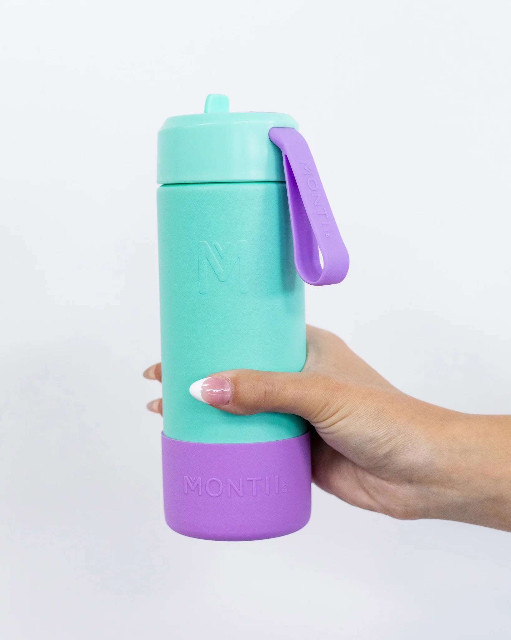 Det universelle strop kan sammensættes med alle Montii's låg til drikkedunke. På den måde kan du sammensætte din helt egen unikke drikkedunk. Stroppen på låget kan tages af og på + skiftes ud med andre farver. Perfekt til nemt at holde på drikkedunken.