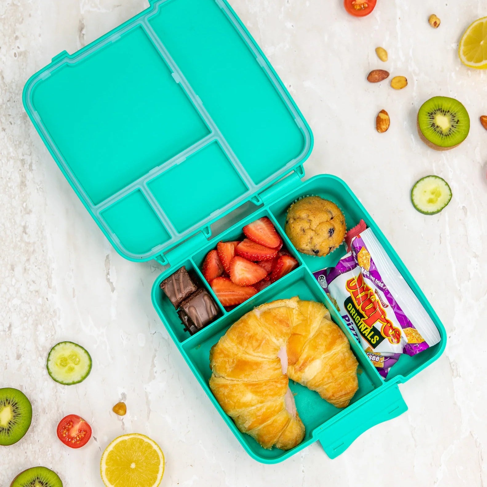En rummelig og lækagesikker* madkasse til større appetitter – perfekt til en hel sandwich, wraps, croissanter, yoghurt, frugt og snacks. Madkassen er nem at åbne med én enkelt lås og kan tilpasses med tilkøb af silikoneindsatser eller en lille termobeholder til varme måltider.