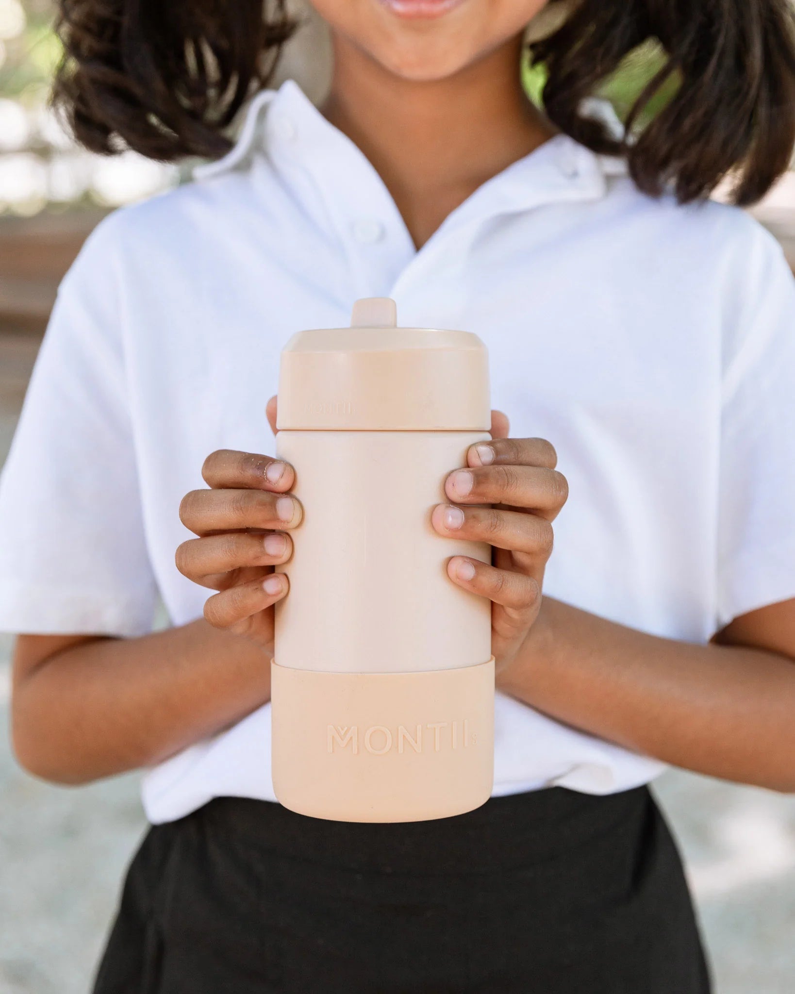 Den universelle drikkedunk base kan sammensættes med alle Montii's låg, sugerør og bund. På den måde kan du sammensætte din helt egen unikke drikkedunk. Drikkedunken kan holde koldt i op til 24 timer og 8 timer varmt.
