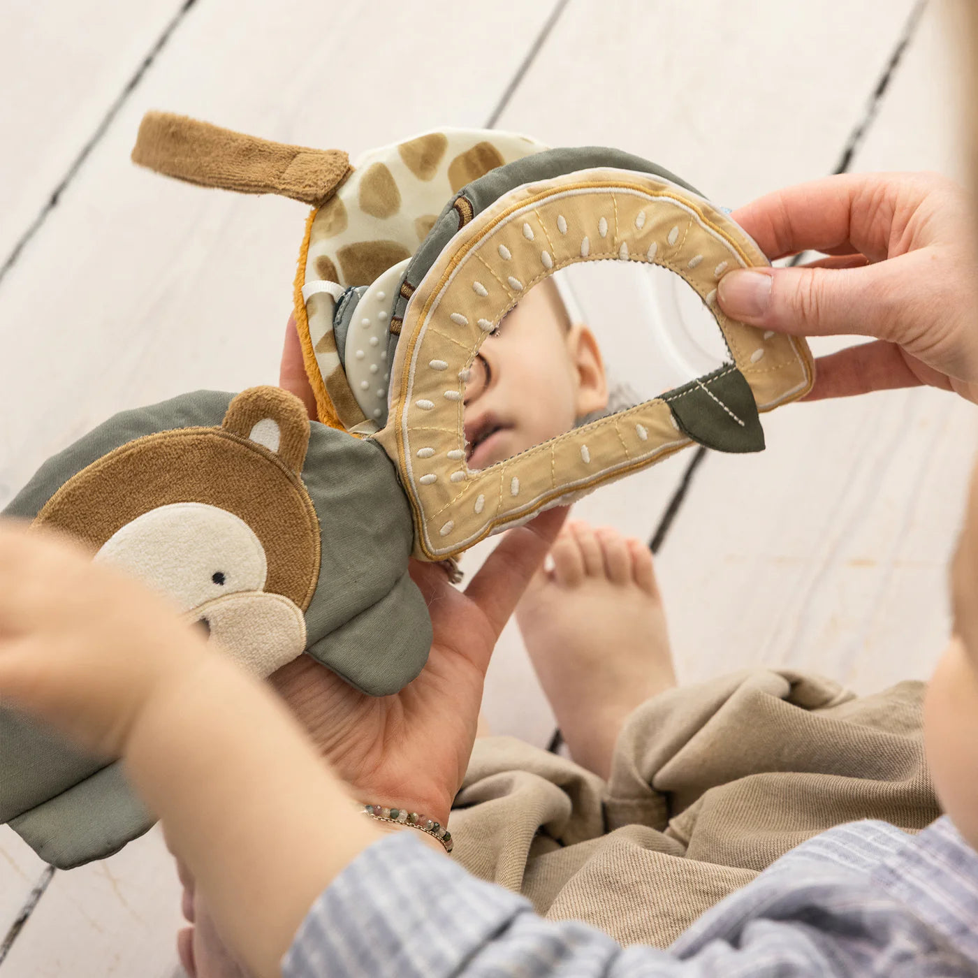 Stofbogen er både sjovt legetøj for de mindste og en oplagt mulighed for at stimulere barnets sanser. Tag stofbogen med på farten, og brug velcro-stroppen til at sætte den fast på eksempelvis klapvognen, så den ikke falder ud.