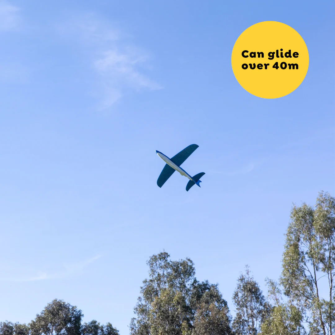 Denne lette og nemt affyrbare haj i skumplast har et imponerende vingefang, der gør det muligt for den store fisk at svæve op til 40 meter med en glidende bevægelse. Hvorfor en haj, spørger du måske? Vores designere var trætte af de gamle klichéer – flyvende fugle, fly og flagermus er simpelthen for kedelige!
